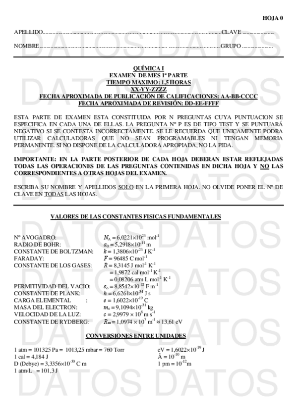 He publicado nuevos examenes de 1º Química I: Formulario y examen de 2020