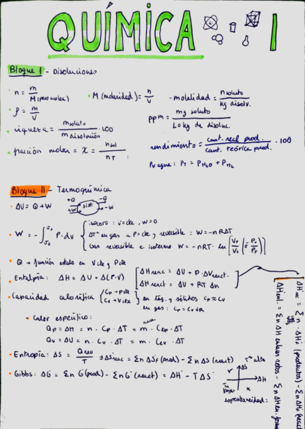 Apuntes muy detallados con ejercicios de exámenes y del PDF de moodle. No cursé química en bachillerato y estos apuntes me ayudaron a pasar la asignatura con creces.