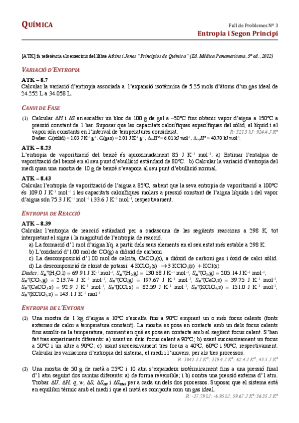 He publicado nuevos apuntes de 1º Química II: Problemes termo