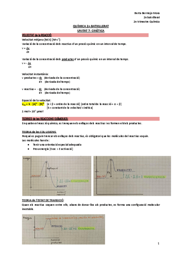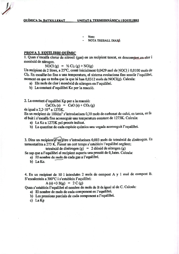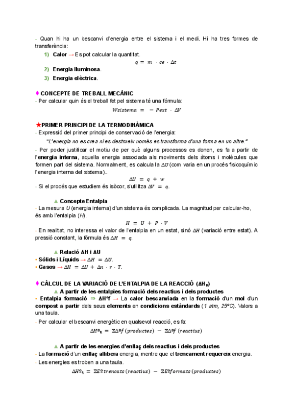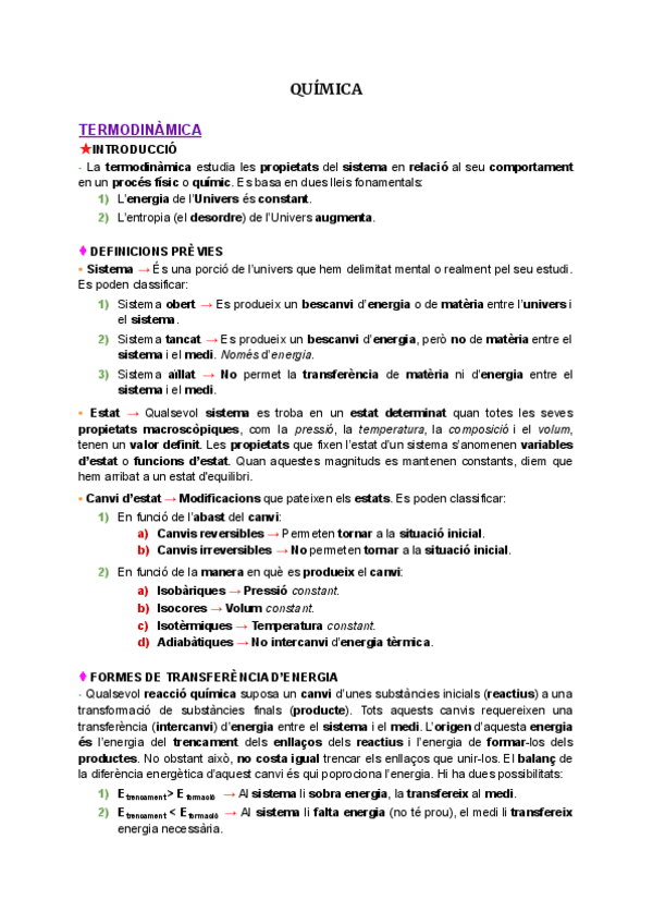 Apuntes en catalán pero se pasan por el traductor y ya. Sistema. Estado y sus cambios. Tres principios termodinámica. Constantes del equilibrio. Principio de Le Chatelier.