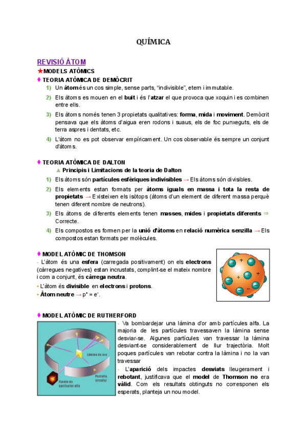 Apuntes en catalán pero se pasan por el traductor y ya. Modelos atómicos y Tabla Periódica