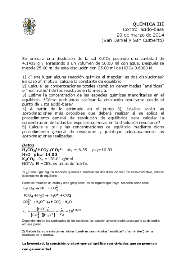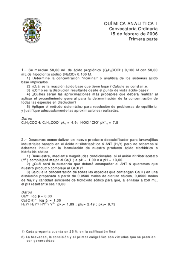 He publicado nuevos examenes de 1º Química IIi: Ácido-base