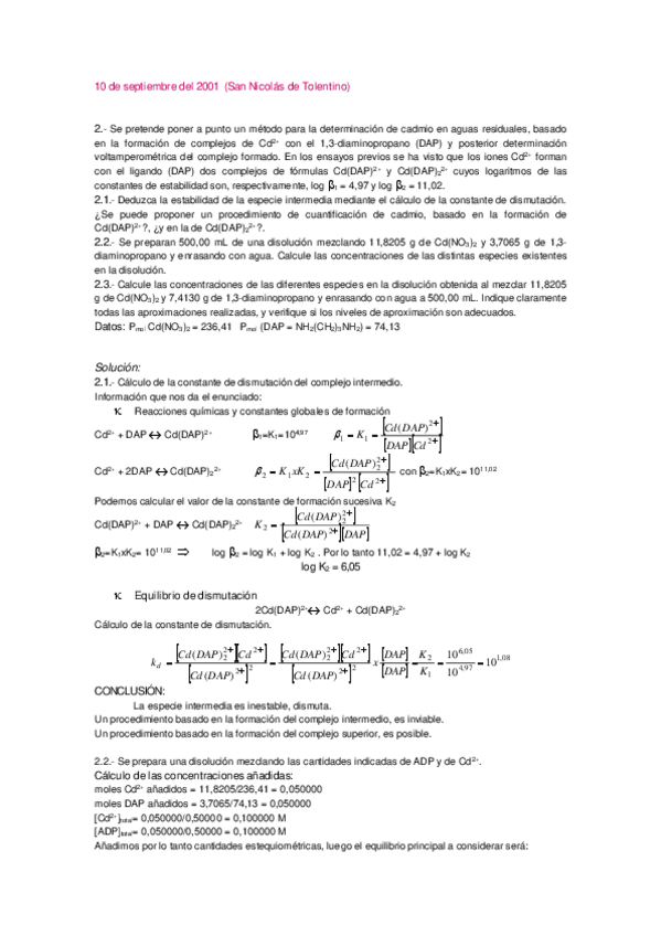 He publicado nuevos examenes de 1º Química IIi: Complejos