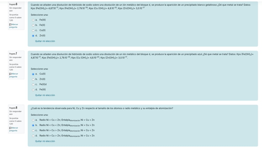 test metales de transición