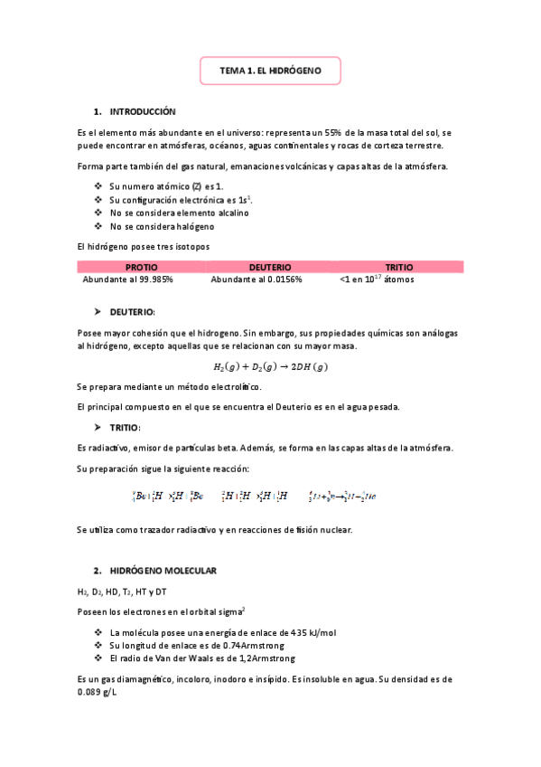 He publicado nuevos apuntes de 2º Química Inorgánica I: Tema-1.-Hidrogeno.pdf