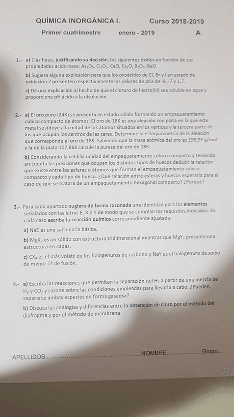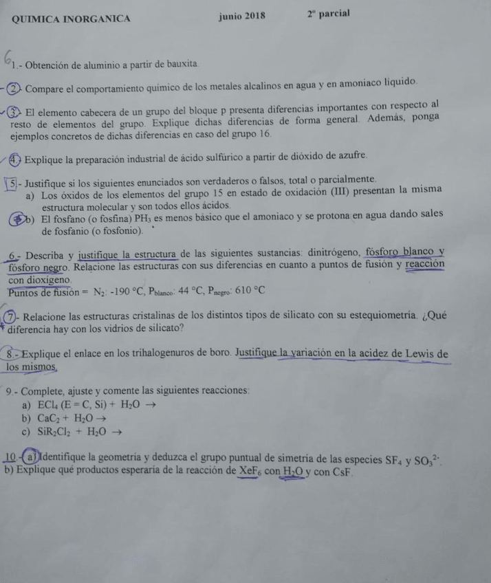 exámenes inorgánica