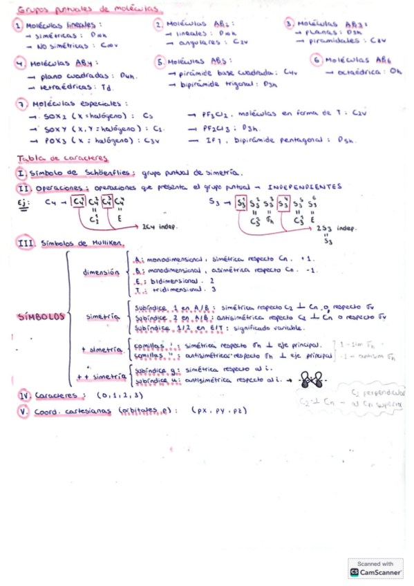 Temas: Simetría molecular, orbitales moleculares, reacciones ácido-base y reacciones redox