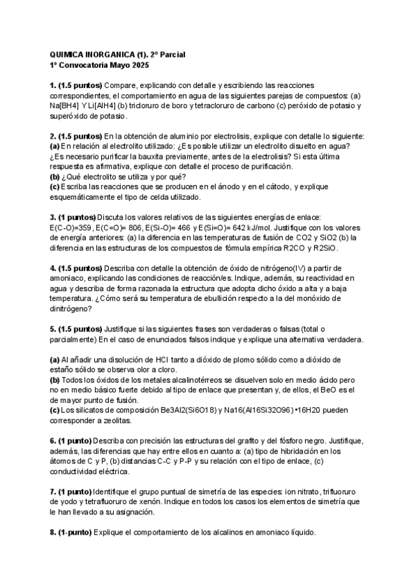 He publicado nuevos examenes de 2º Química Inorgánica I: 1-PARCIAL-DE-MAYO-2024-2025.pdf