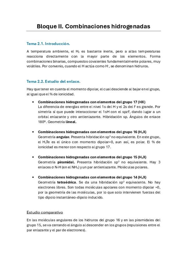He publicado nuevos apuntes de 2º Química Inorgánica I: 1º cuatri - Combinaciones hidrogenadas
