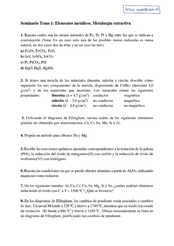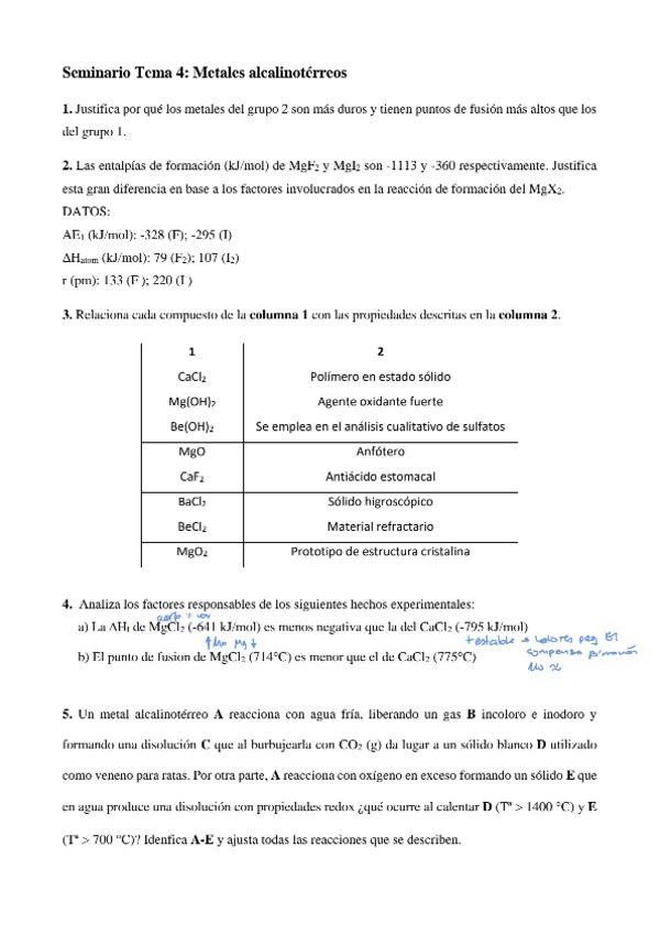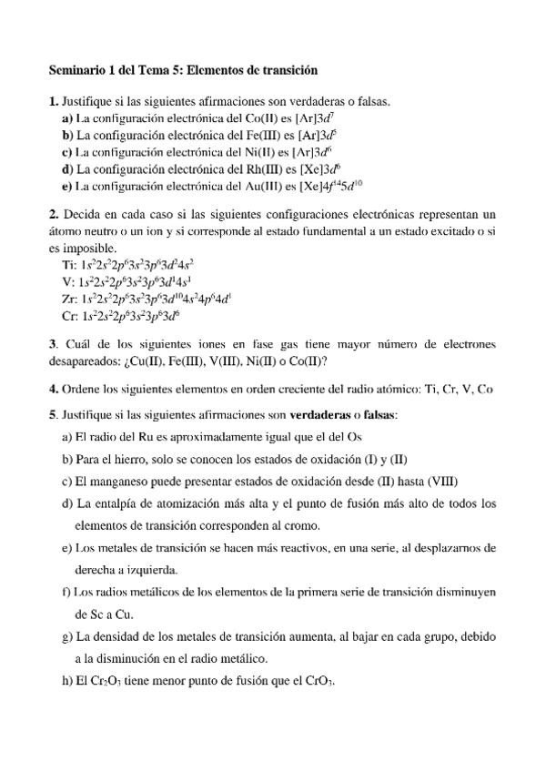 He publicado nuevos ejercicios de 2º Quimica Inorganica II: Seminarios corregidos