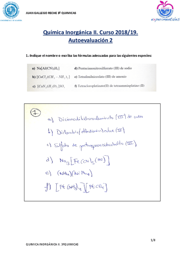 He publicado nuevos apuntes de 2º Quimica Inorganica II: AUTOEVALUACIONES