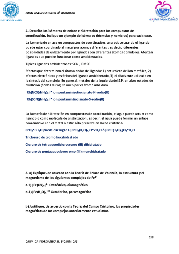 He publicado nuevos practicas de 2º Quimica Inorganica II: EXPERIMENTACIÓN EN QUIMICA INORGÁNICA