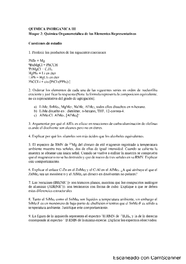 He publicado nuevos ejercicios de 3º Química Inorgánica III: Ejercicios-B2.-Cuestionario-OrganoMetalicos-Representativos.pdf
