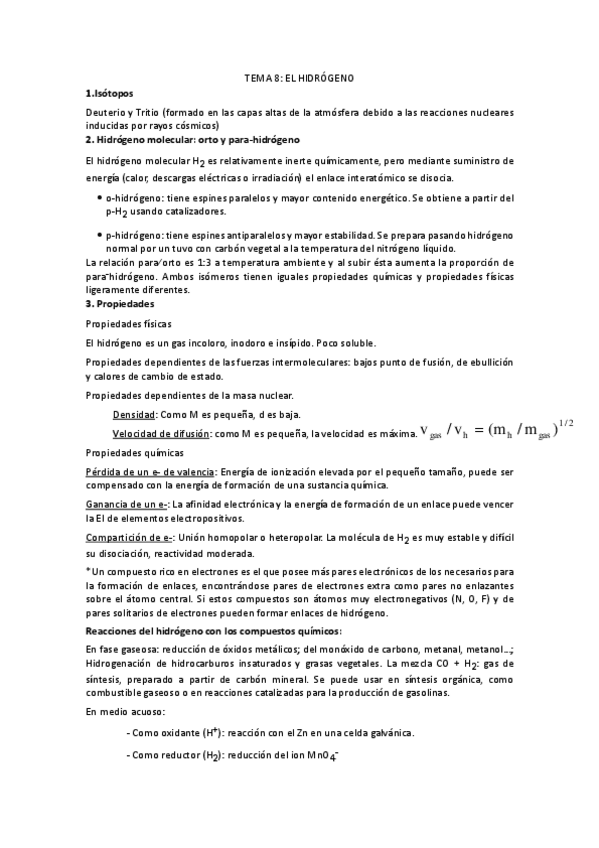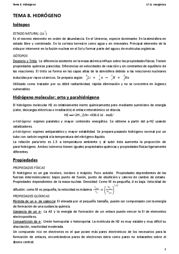 He publicado nuevos apuntes de 1º Química Inorgánica: TEMA 5. EL HIDROGENO - Q.Inorgánica.pdf