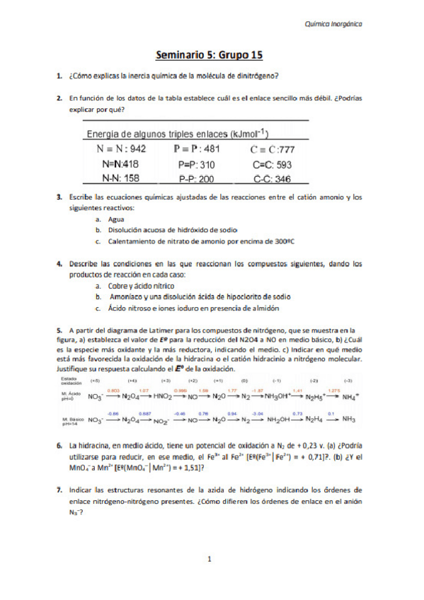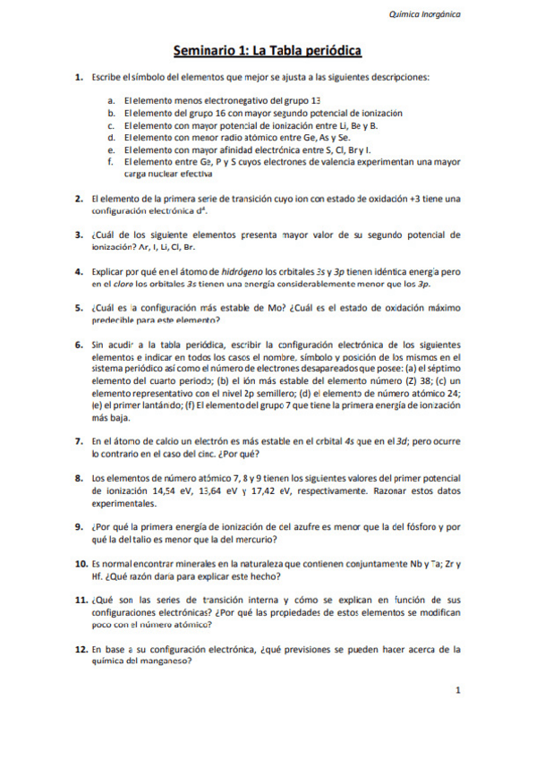 He publicado nuevos ejercicios de 2º Química Inorgánica: Seminarios
