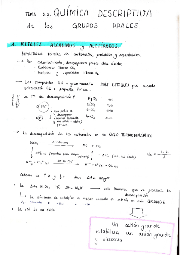 En el documento del tema 1 hay una errata: el tamaño aumenta al bajar de grupo y por lo tanto la energía reticular disminuye (útima hoja)