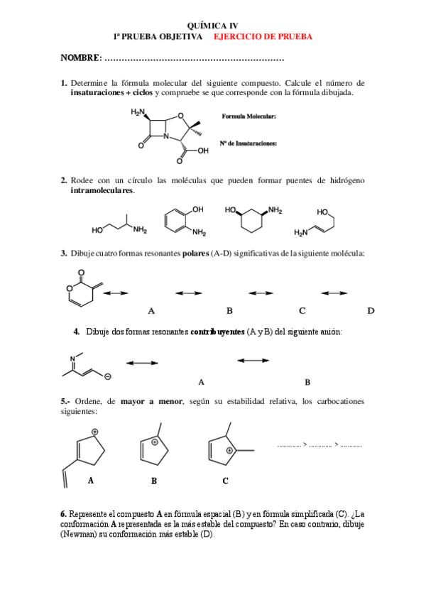 Ejercicios y exámenes QIV
