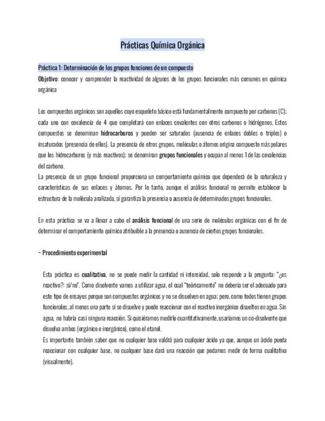Apuntes de las prácticas de química orgánica, basadas en el seminario clave para el examen de prácticas.