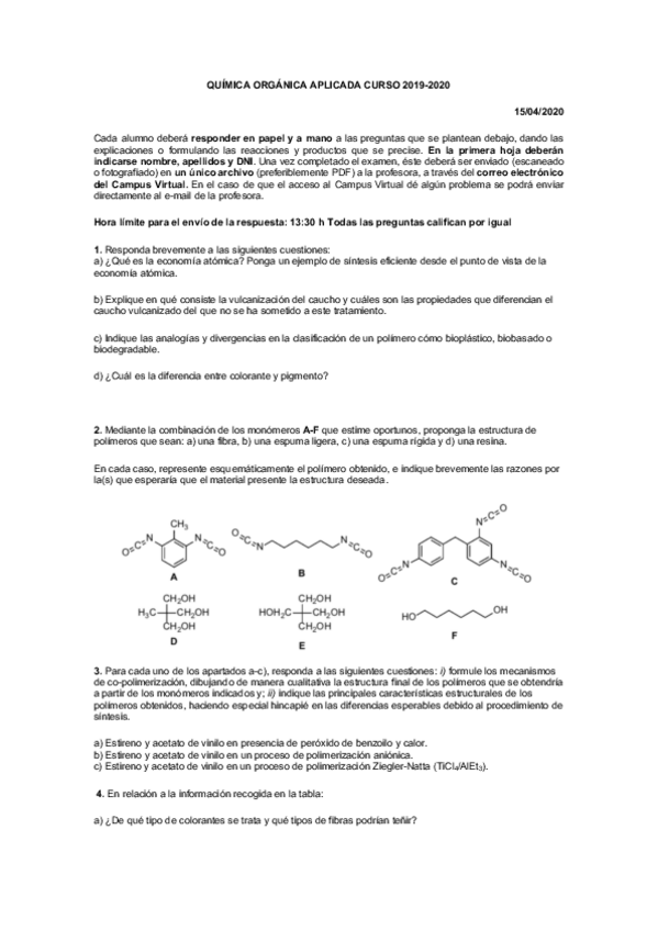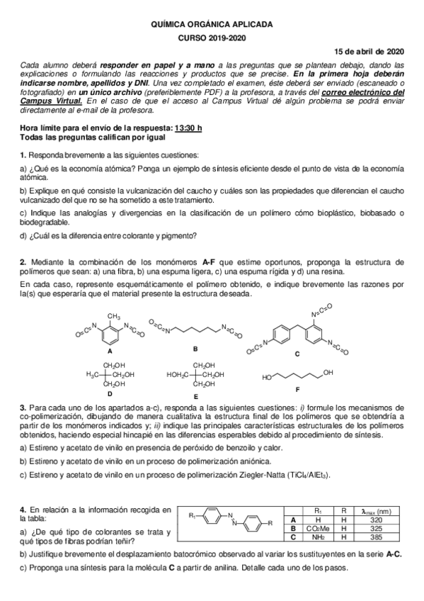 He publicado nuevos examenes de 4º Química Orgánica Aplicada: Control-15-de-abril.pdf