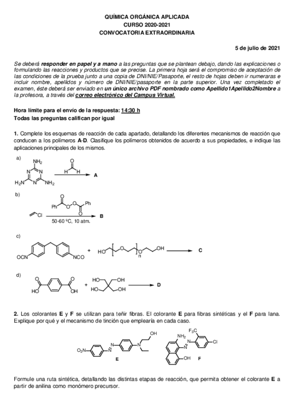 He publicado nuevos apuntes de 4º Química Orgánica Aplicada: Examen-Julio-2020-2021.pdf
