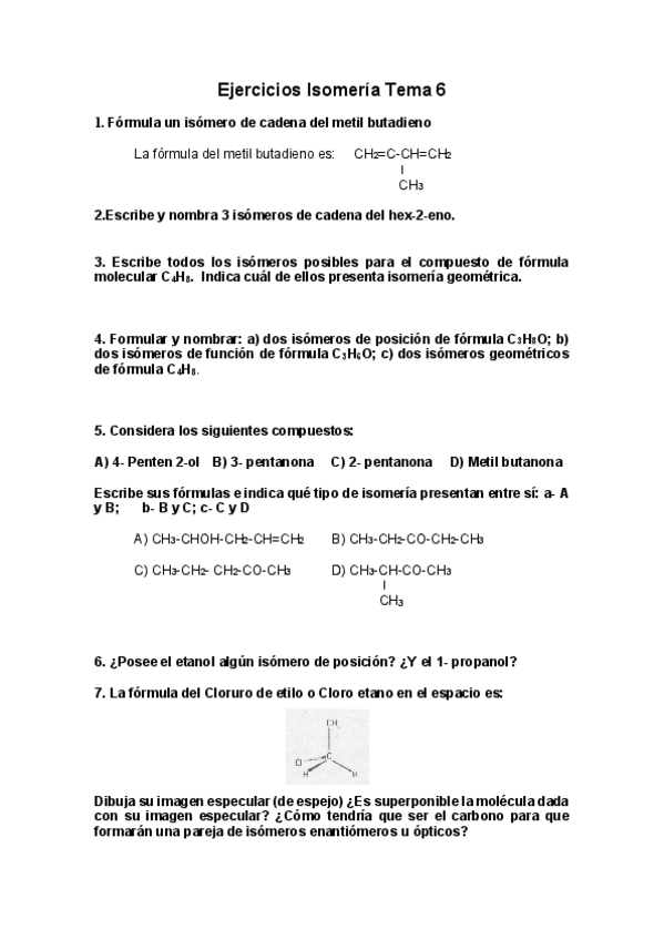 Ejercicios Química Orgánica e Inorgánica