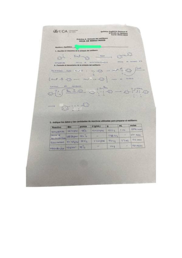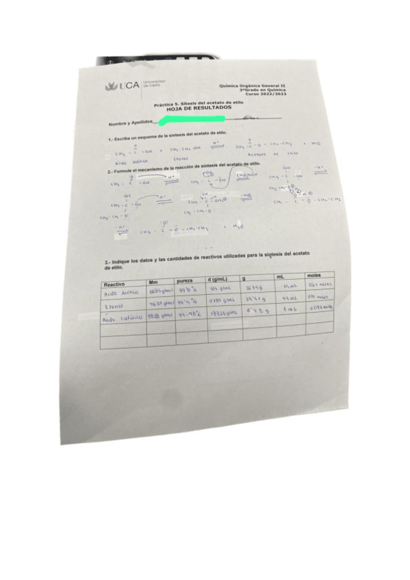 He publicado nuevos practicas de 3º Química Orgánica General II: HOJA DE RESULTADOS PRACTICA QOII