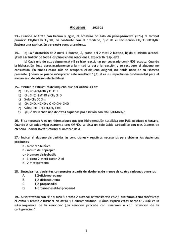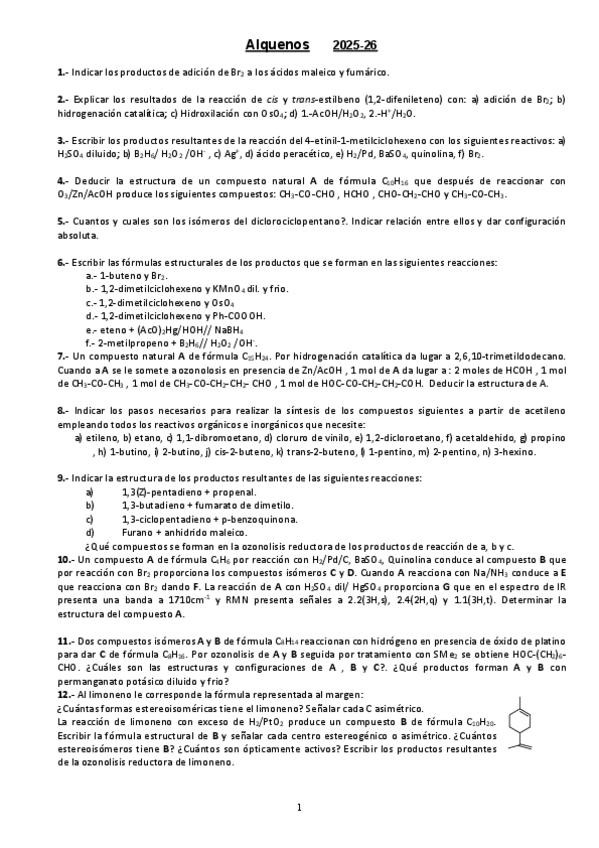 He publicado nuevos ejercicios de 2º Química Orgánica I: Seminario-3-Alquenos.pdf