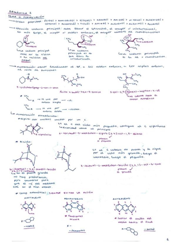 RESUMEN DE TODA LA FORMULACIÓN DE QUÍMICA ORGANICA I QUE CAE EN EL EXAMEN