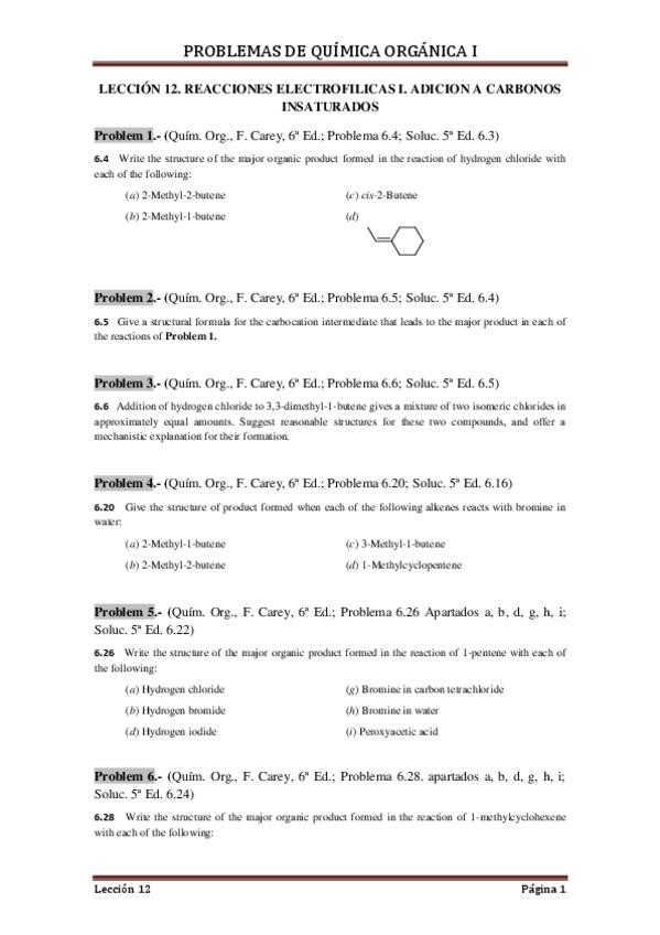 El documento que pone ejercicios del tema 2 también contiene ejercicios de la regal de Hückel que son del tema 3. Todos los ejercicios son sacados del Carey, que son los mismos que los que pone Galbis en el boletín