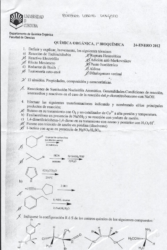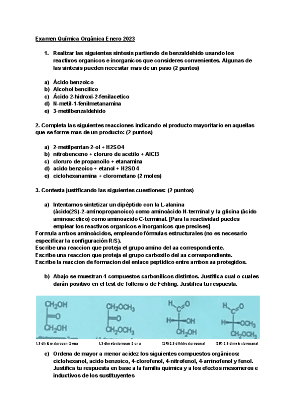 Exámenes Química orgánica