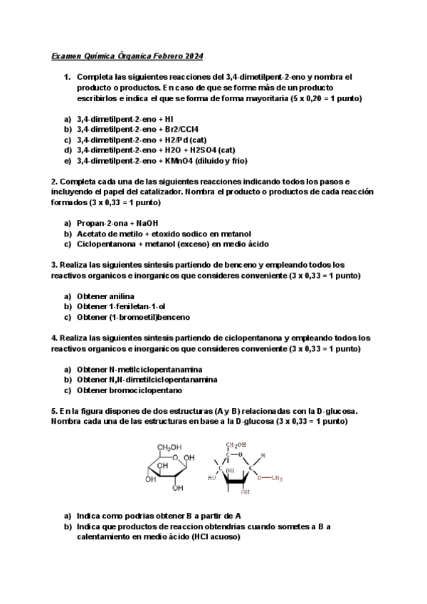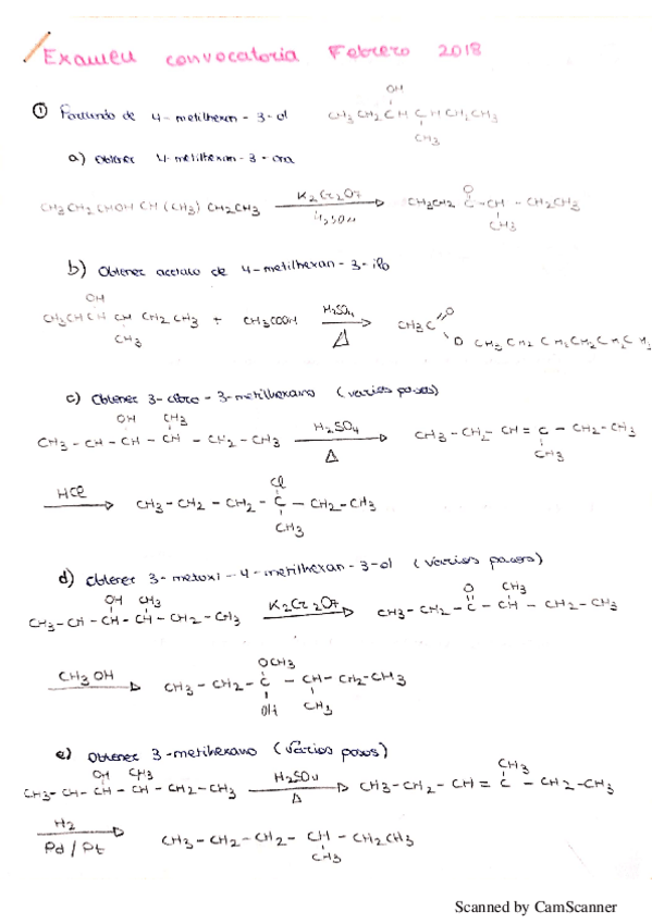 Ejercicios exámenes orgánica