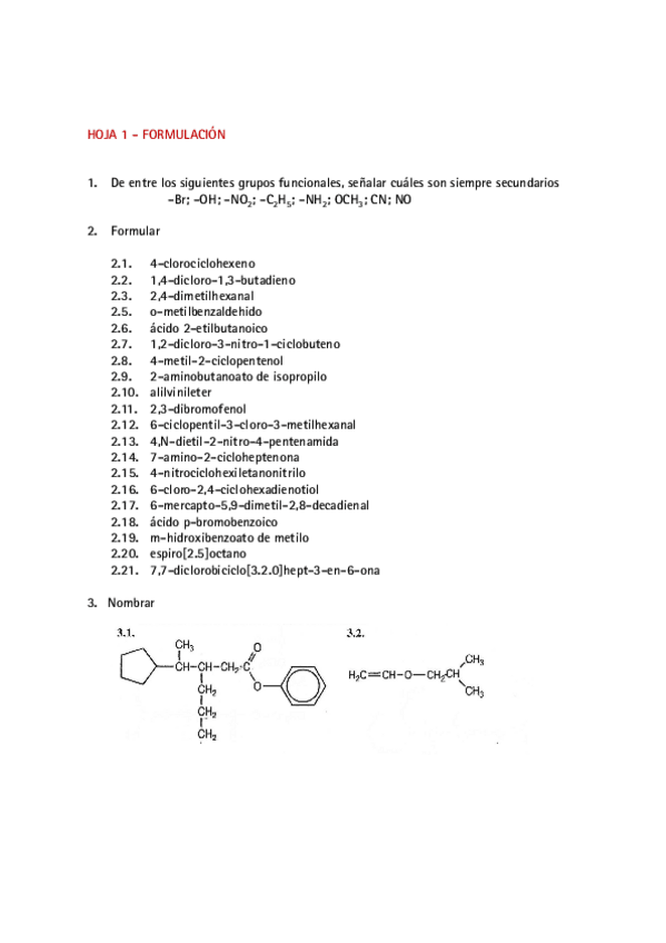 He publicado nuevos ejercicios de 2º Química Orgánica: Formulación