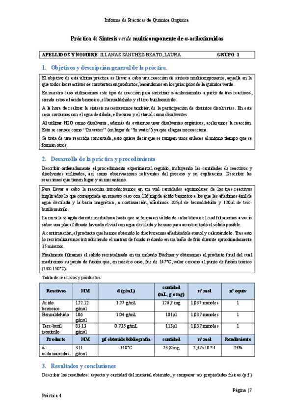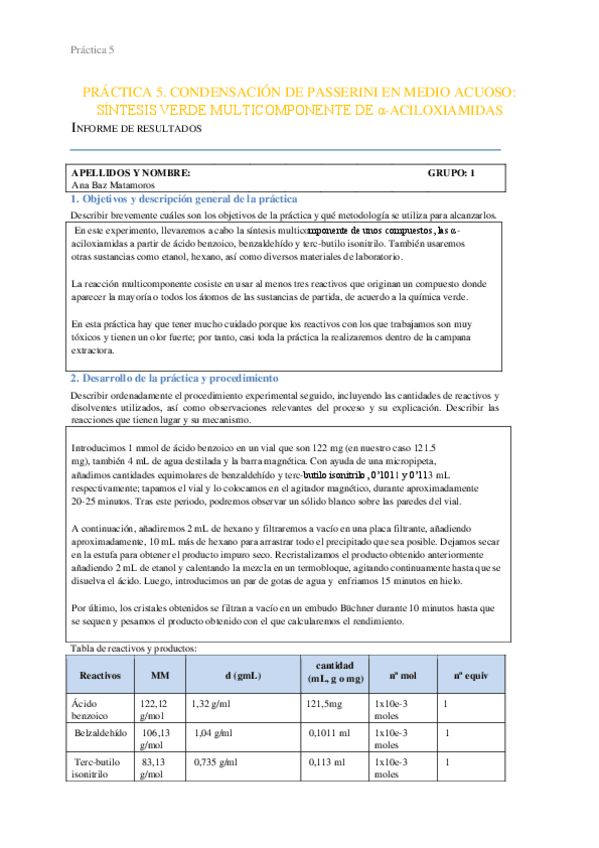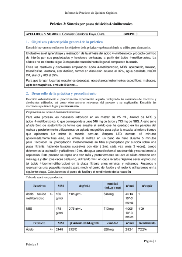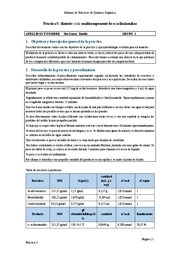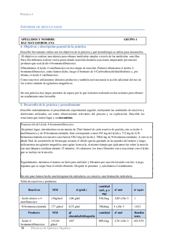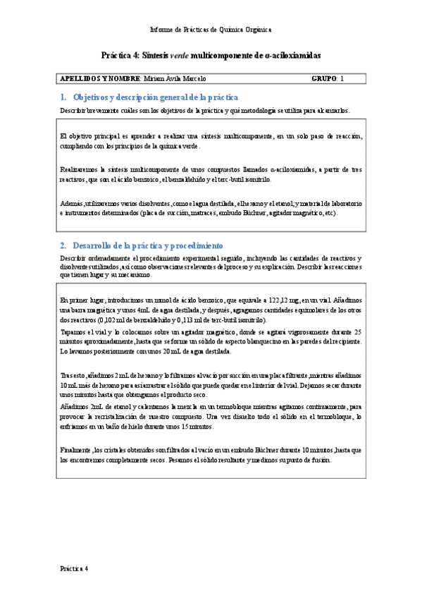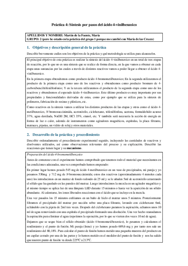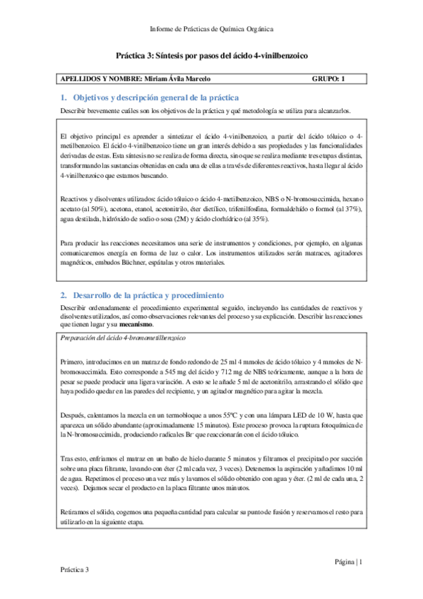 Informes de las prácticas 1-5 de Química Orgánica curso 23/24.