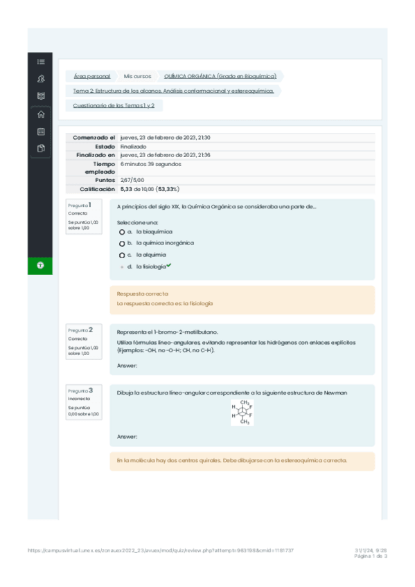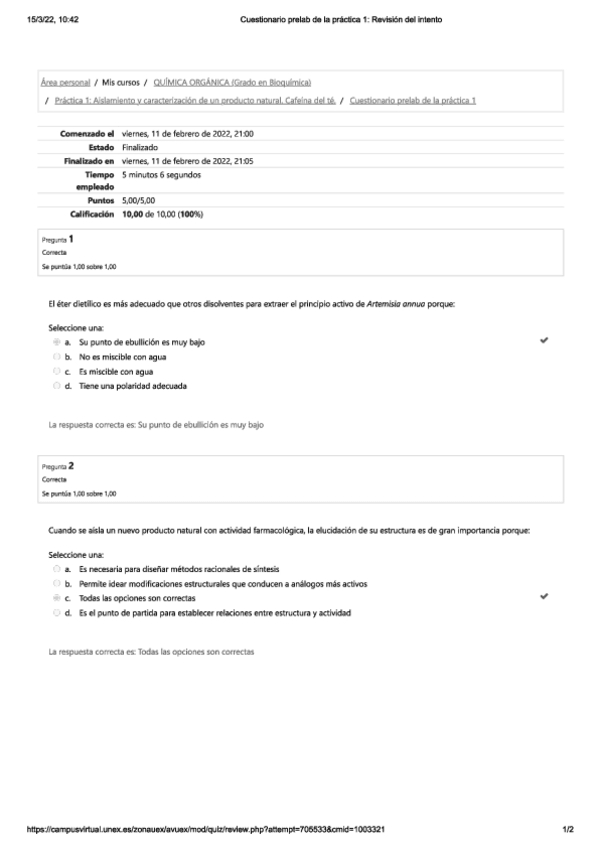 He publicado nuevos test de 1º Química Orgánica: prelab y postlab-cuestionarios