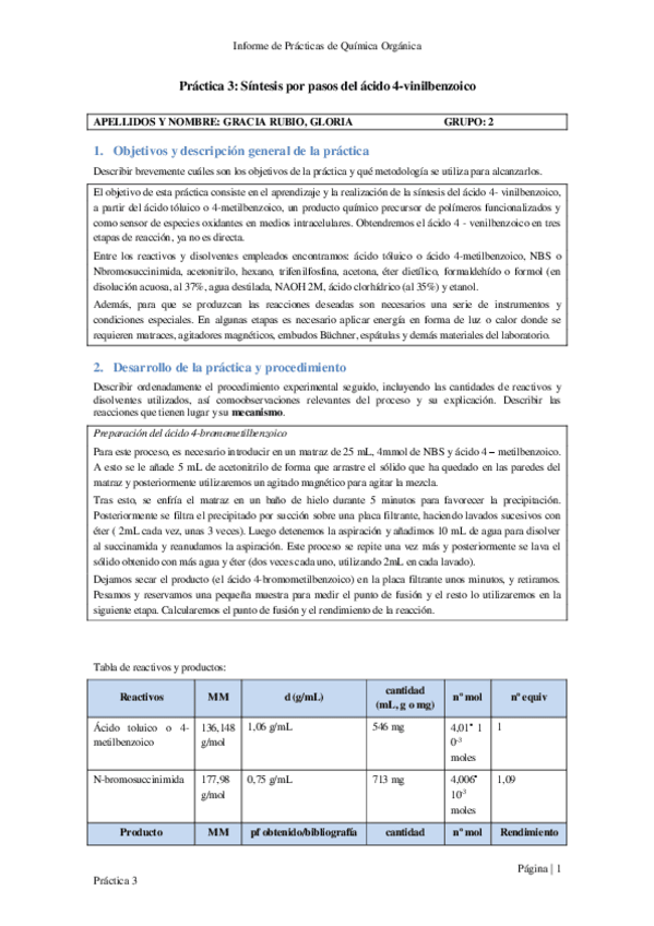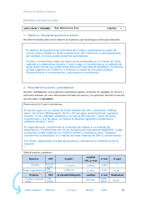 He publicado nuevos practicas de 1º Química Orgánica: informes de prácticas