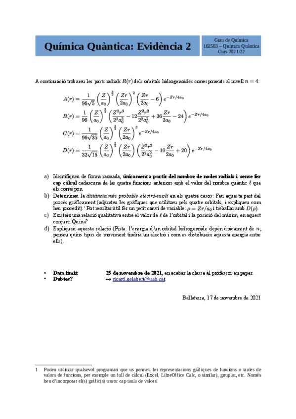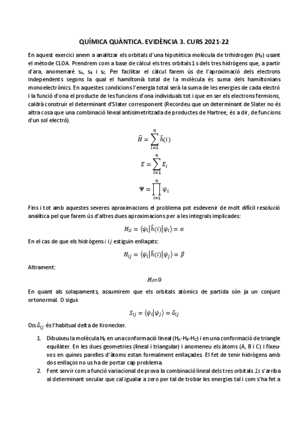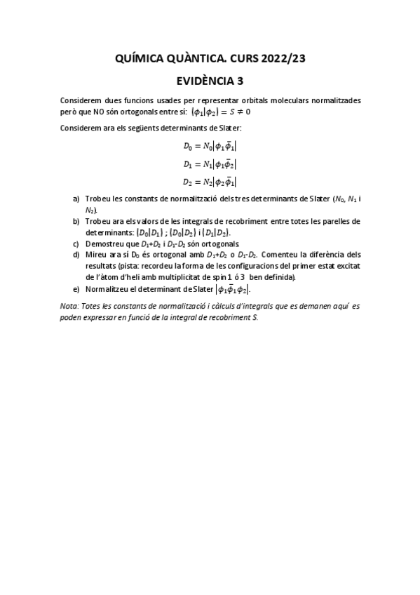 He publicado nuevos ejercicios de 2º Química Quàntica: Evidencia-2-2022-2023.pdf