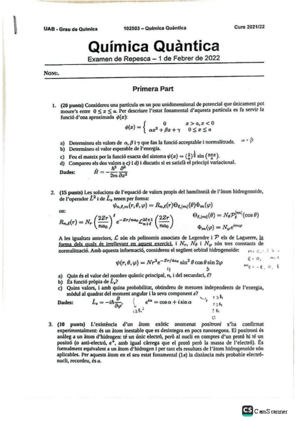He publicado nuevos examenes de 2º Química Quàntica: Enunciats Evidències (21-22)