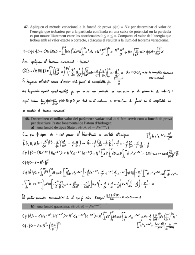 He publicado nuevos ejercicios de 2º Química Quàntica: Metode variacional.pdf
