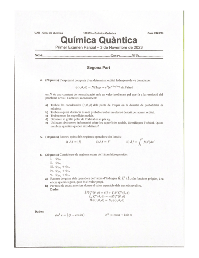 He publicado nuevos apuntes de 2º Química Quàntica: Formules-Quantica-orbitals-hidrogenoides-part-angular-i-radial-integrals-inmediates-constants-fisiques.pdf