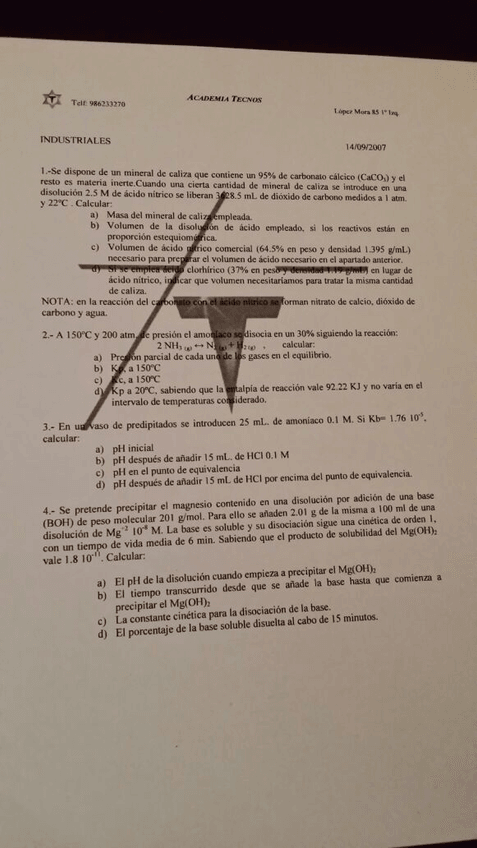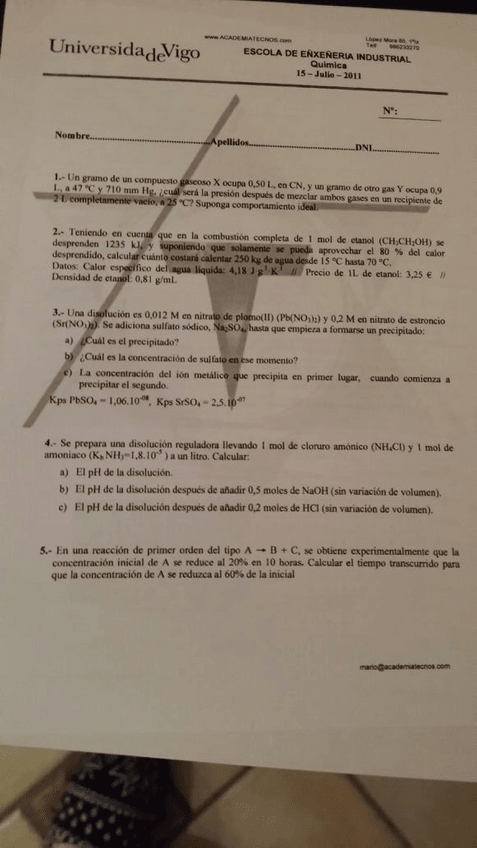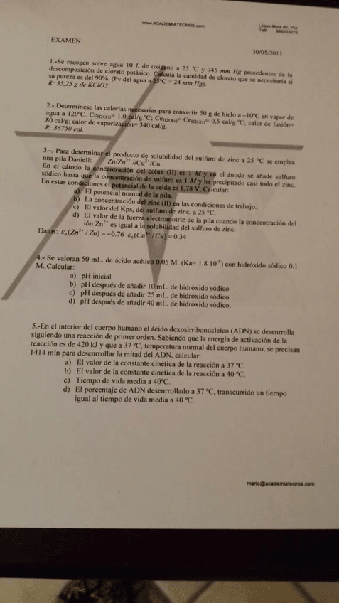 Exámenes Problemas Química (inglés)