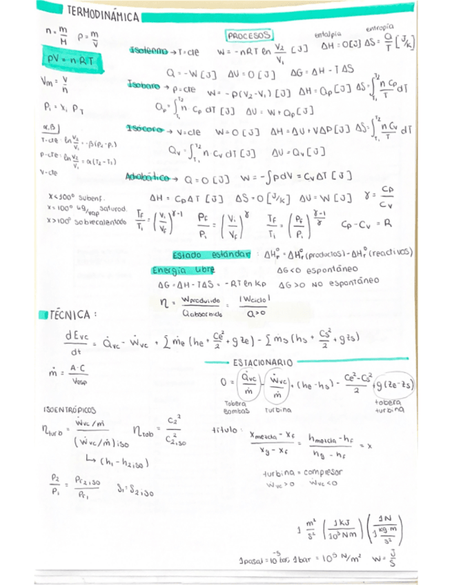 Apuntes / Formulario Termodinámica