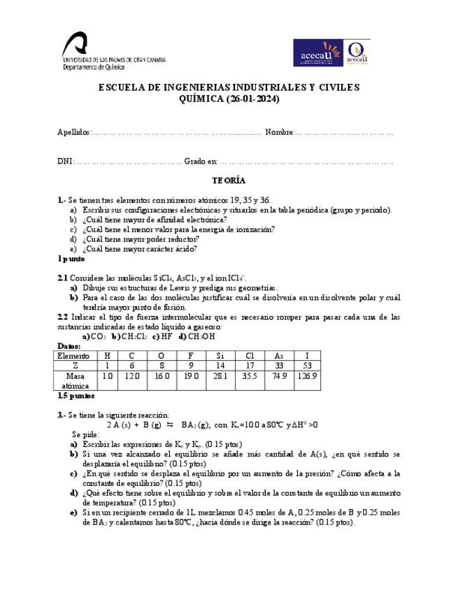 He publicado dos exámenes de Química para que practiquéis