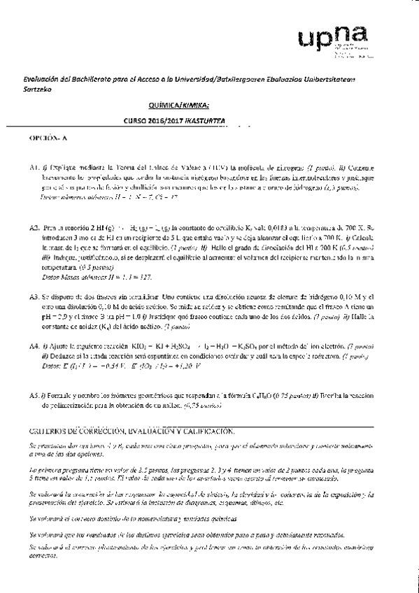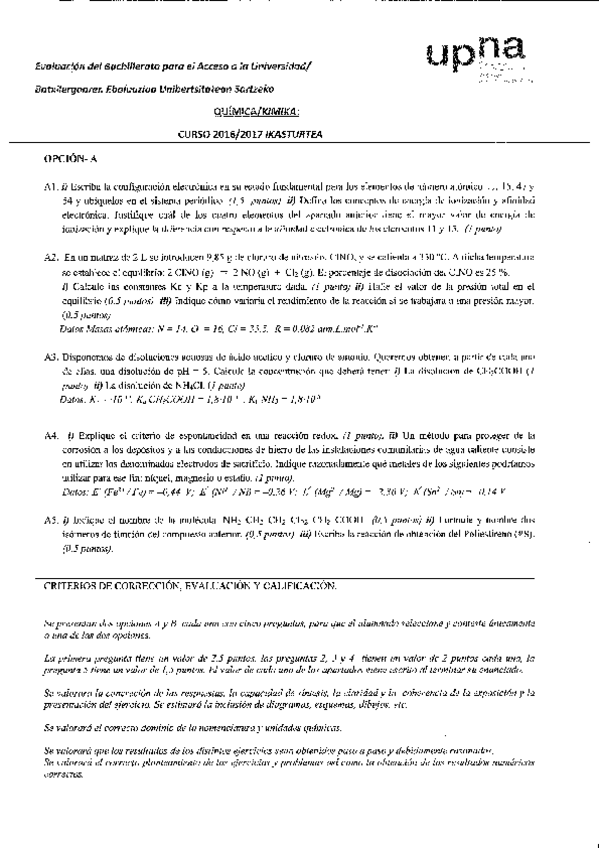 Exámenes ebau química 2017-2019