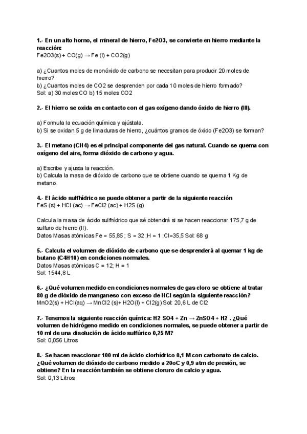 Ejercicios resueltos de todos los temas de 2º y primero de quimica bachillerato.