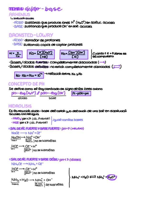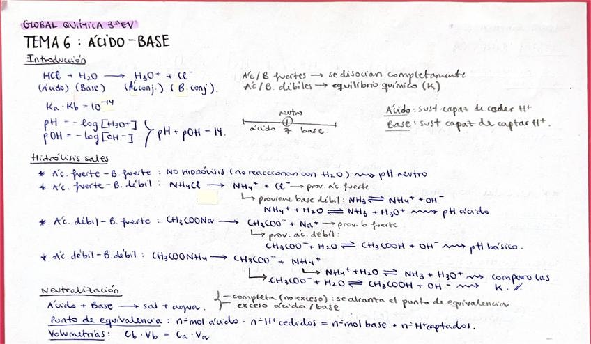 Apuntes teóricos con fórmulas y ejemplos de ácido-base listos para la PAU