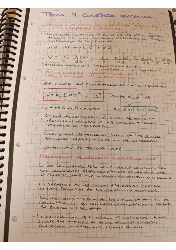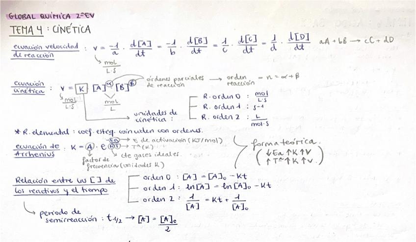 Apuntes de teoría de Química, tema completo de CINÉTICA QUÍMICA.