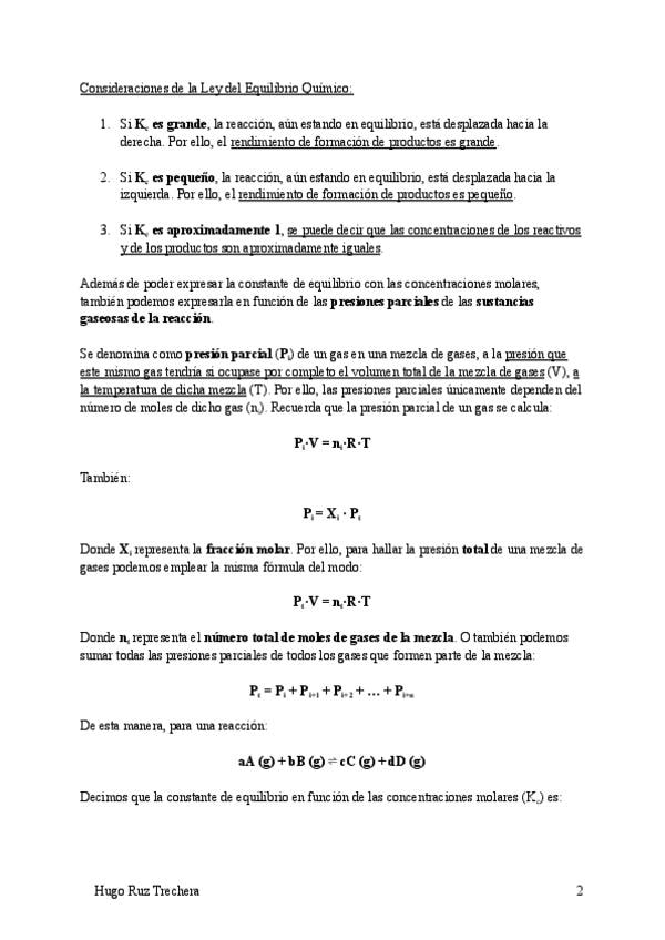 Apuntes de teoría de Química de 2do de Bachillerato, tema completo de EQUILIBRIO QUÍMICO.
