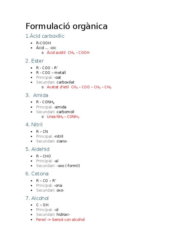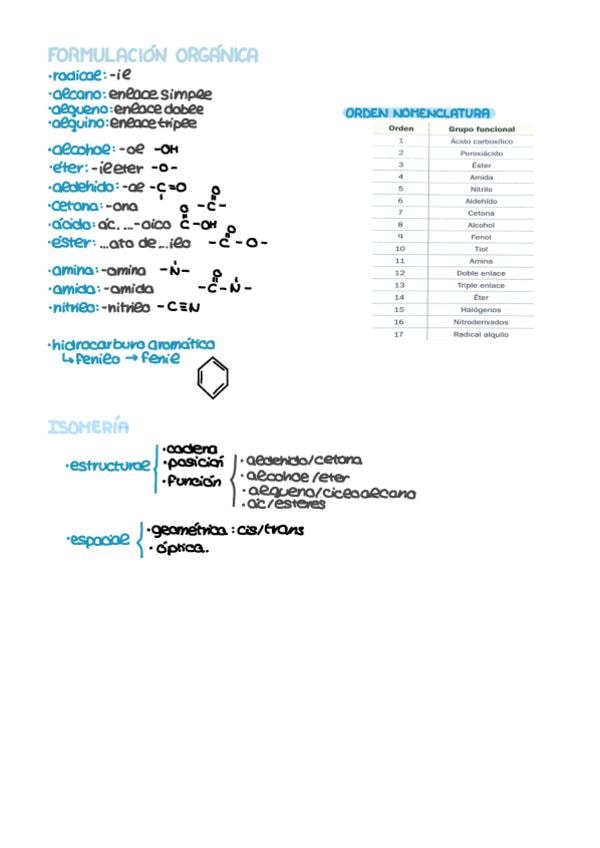 Resumen química orgánica 2 bachillerato. Formulación, radicales, compuestos complejos, isomería y reacciones de compuestos orgánicos