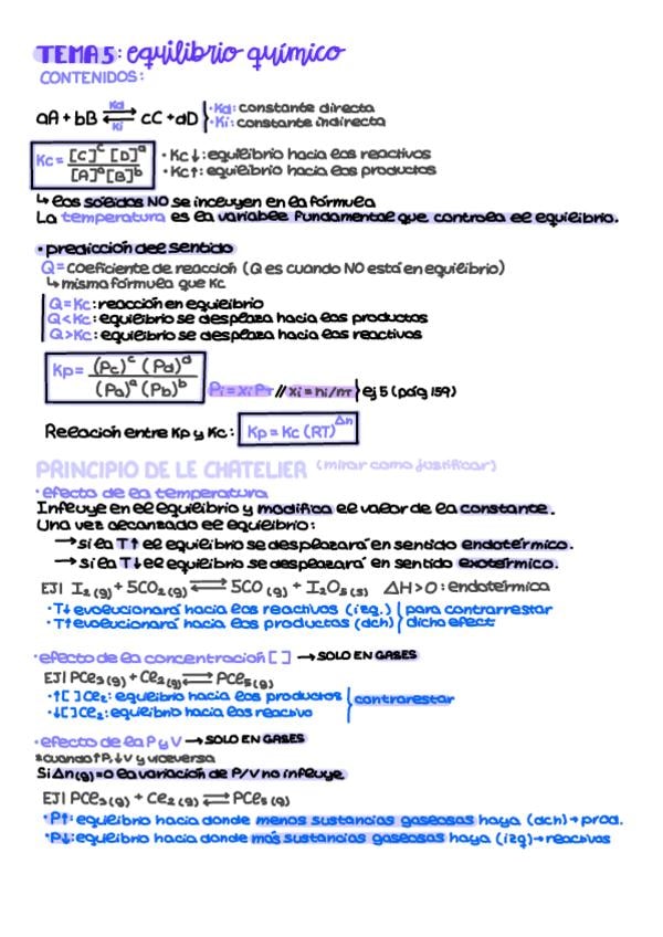 Resumen con ejemplos del tema 5 de química de 2do bach: equilibrios químicos.