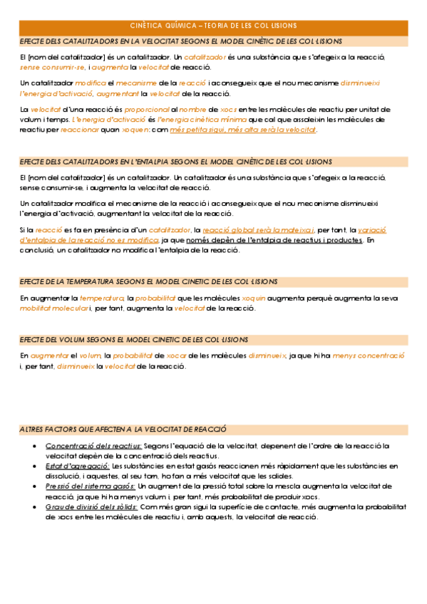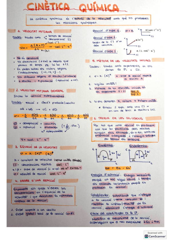 Esquemes i justificacions del temari de cinètica química per a les PAU 2026.